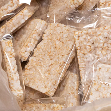 当社の製品はうるち米を使用した一般的な焼き・ 揚げ米菓、ベビーフード用の煎餅の製造を行っています。高級嗜好品向けの餅米粒煎餅は特殊製法を用いた特徴と味で好評を博しています。生産ラインは原料の米から最終包装製品まで一貫した生産設備を整えています。なかでも包装ラインは様々な仕様や生産量に対応を可能にしています。大手量産メーカーでは対応できない柔軟な商品の生産やPB商品の開発から製造までの依頼も増えています。